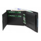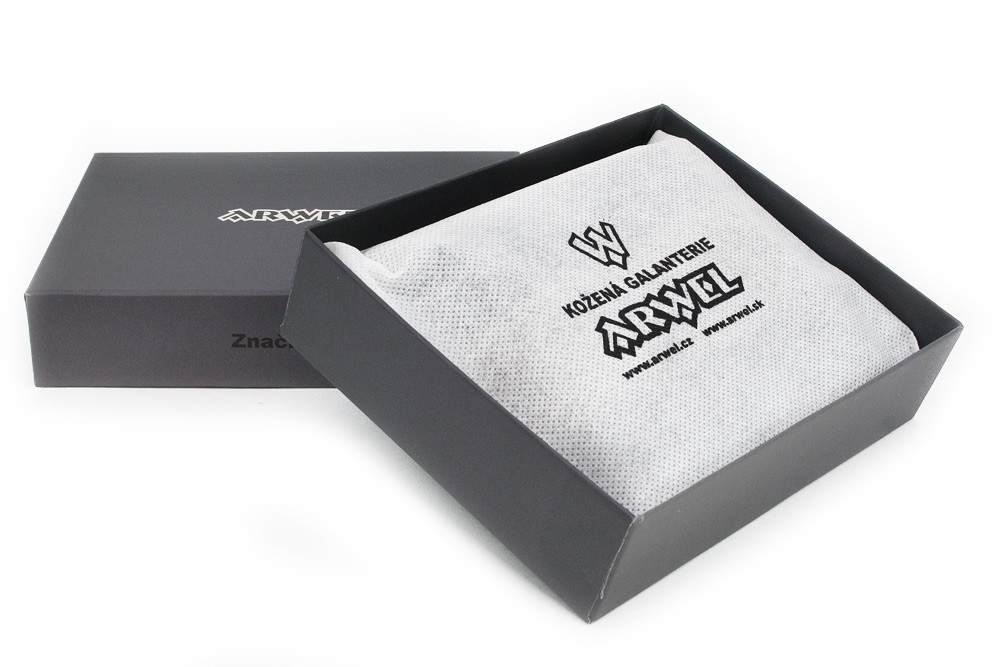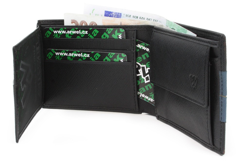 2 Geldscheinfächer, Klappenfach für Münzen, 6 Fächer für Kreditkarten oder Dokumente, 1 transparentes Fenster, 1 verstecktes Fach.