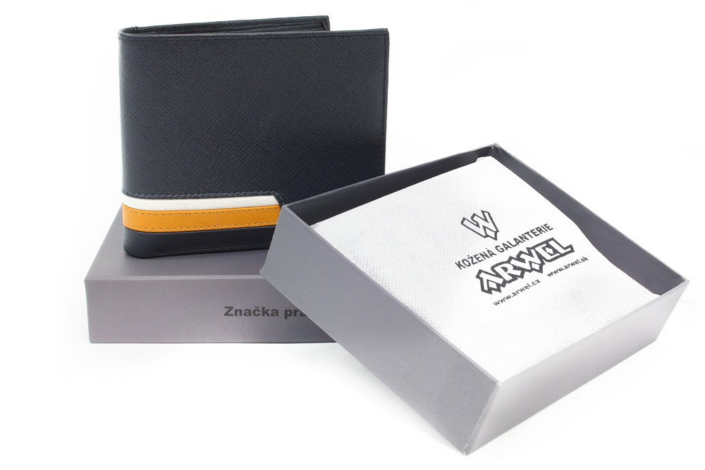 2 Geldscheinfächer, Klappenfach für Münzen, 7 Fächer für Kreditkarten oder Dokumente, 1 Sichtfenster, 1 Fach auf der Rückseite.