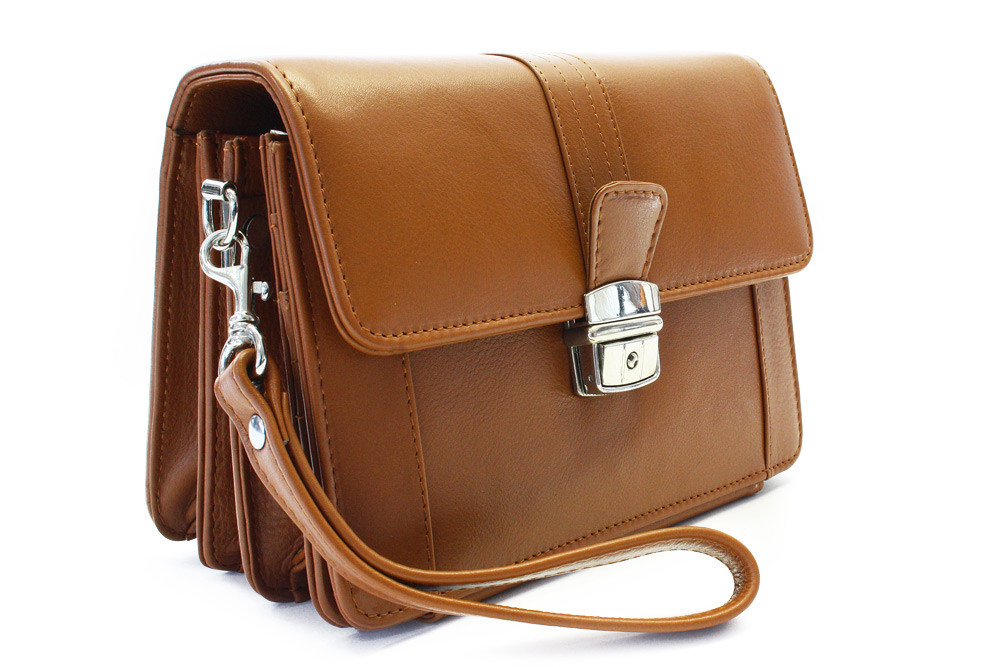 Das zeitlose Lederetui für Herren enthält 3 durch Reißverschlusstaschen getrennte Fächer und ein Faltregister mit 2 Fächern für Dokumente, 4 Fächern für Kreditkarten oder Visitenkarten und 1 Reißverschlussfach. Das Etui verfügt über einen abnehmbaren Schlüsselring, eine abnehmbare Handgelenkschlaufe und einen abnehmbaren, bis zu ca. 130 cm verstellbaren Schultergurt.