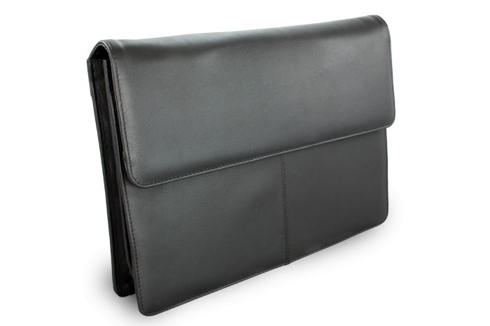 Ledermappe mit Klappe enthält 2 separaten Reißverschlusstaschen, 2 Reißverschluss- und 1 Innentasche, abnehmbarem Schlüsselring, Innentaschen für Taschenrechner, Karten und Schreibutensilien, Reißverschluss-Außentasche.