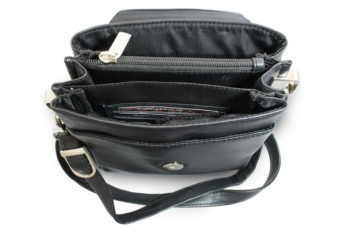 Der kleine Leder-Crossbody-Bag für Männer hat drei größere, lose Fächer unter der Klappe, ein größeres Fach mit Reißverschluss und ein kleineres Fach mit Reißverschluss. Eines der Fächer enthält eine Handytasche und 2 Schlaufen für Schreibgerät. Auf der Vorderseite befindet sich unter der Klappe ein kleineres Fach. Reißverschluss-Außentasche hinten. Verstellbarer Lederriemen.