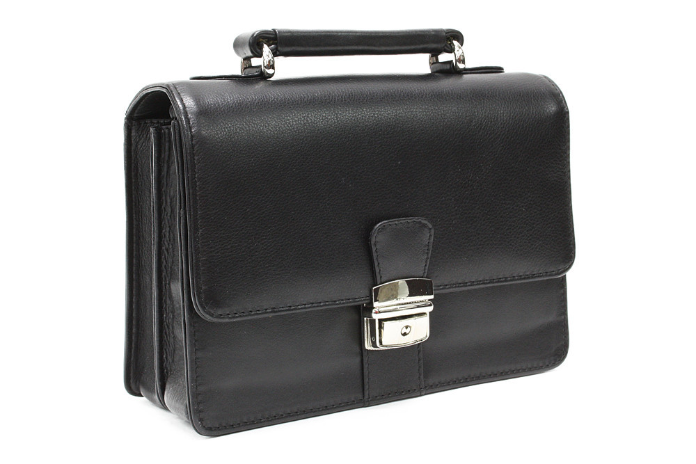 Hochwertiges Herrenlederetui in Schwarz mit 2 durch ein Reißverschlussfach getrennten Fächern, 4 Kreditkartenfächern, 3 Reißverschlussfächern und 1 Innenfach. An der hinteren Außenseite befindet sich eine Reißverschlusstasche. Das Etui enthält einen abnehmbaren Schlüsselring und eine Handschlaufe.
