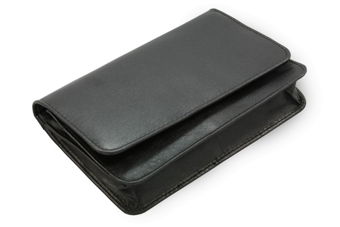 Vielseitig einsetzbar als Portemonnaie, Ausweismappe (mit Tasche in Passgröße), Kosmetiketui. Grundmaße 10 x 15 x 3 cm. Material NAPPA, Farbe schwarz.